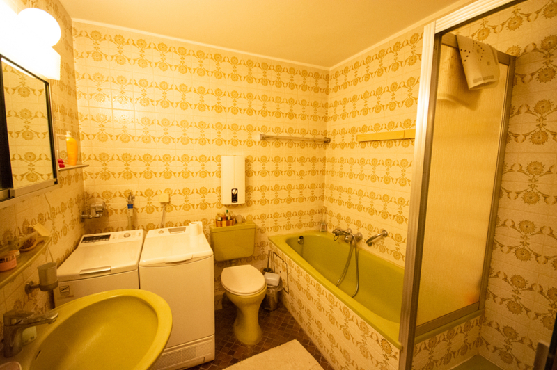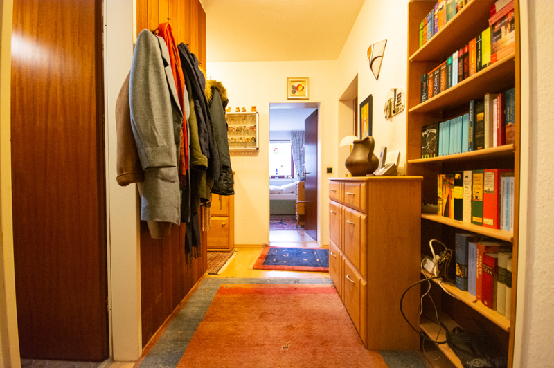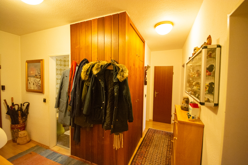 Das Vollbad mit Dusche und Badewanne bietet Platz für die Waschmaschine und den Trockner. Schuhe und Jacken verstauen Sie bequem im Garderobenbereich im Flur.