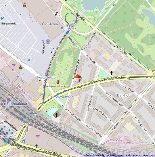 Lage: Die kurze Blumenthalstraße führt in Nord-Süd-Richtung von der Parkstraße über die Hermann-Böse-Straße bis zur Hohenlohestraße in unmittelbarer Bahnhofsnähe.
