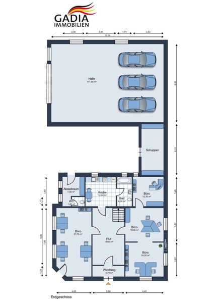 | Bürofläche | 150 m² | Grundstücksgröße | 412 m² |