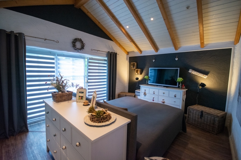 Auf einer ebenerdigen Wohnfläche von ca. 139 qm erwarten Sie durchdachte Räumlichkeiten mit hochwertiger Ausstattung. Über den Flur gelangen Sie im vorderen Bereich des Bungalows in das Gäste-Badezimmer mit WC und begehbarer Dusche sowie in das jetzige Büro. Ebenfalls vom Flur zugänglich ist das Schlafzimmer im hinteren Bereich, ein großes Badezimmer mit Whirlpool-Badewanne und ein weiteres Zimmer. Ein Highlight ist das großzügig geschnittene Wohnzimmer mit Kamin, Esszimmer und offener Küche. Von hier aus blicken Sie in den traumhaft mediterran angelegten Garten.